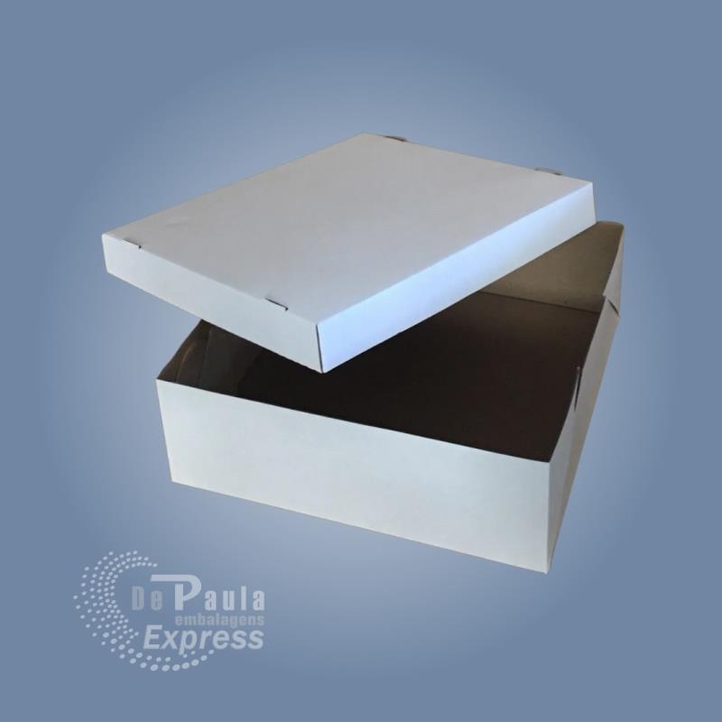 de pizza Pacbox Embalagens. Papel Branco desmontada.